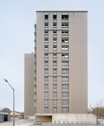 Die neue Fassade ist aber nicht nur ein äußerlicher Gewinn: denn vergrößerte Fenster und Balkontüren sorgen auch für eine bessere Beleuchtung im Innern – und sparen damit auch Beleuchtungsstrom. Von den insgesamt 98 Wohneinheiten sind im neu erstellten Anbau 20 Wohneinheiten über die Einkommensorientierte Förderung, ein Mietzuschuss-Modell des sozialen Wohnungsbaus (EOF) gefördert. Die 58 Wohnungen des Bestandsbaus sind über das Bayerischen Modernisierungsprogramm gefördert, was langfristig moderate und sozialverträgliche Mieten sichert. In Regensburg ist also nicht nur eine kraftvolle Neuinterpretation eines weit verbreiteten Haustyps zu sehen, es wurde auch ein deutlicher Akzent in der präsenten Wohnraumfrage gesetzt.
