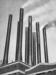 Am Rande des L.Fritz-Gruber-Platzes ist ein Zitat von Man Ray eingelassen: „Alles kann durch Licht verändert, deformiert oder eliminiert werden. Es ist genauso geschmeidig wie ein Pinsel.“ Womit wir bei der Fotografie und damit bei einer letzten Empfehlung wären, die an dieser Stelle ausgesprochen werden soll. Im Mediapark ist im Haus der SK Kulturstiftung in der Photografischen Sammlung eine etwa 200 Bilder umfassende Schau des Fotografen Emil Otto Hoppé zu sehen. Der Fotograf, der in München geboren wurde, aber weltweit tätig war, hatte sich zunächst als Portraitfotograf einen Namen gemacht, dann aber die Industrie als Motiv entdeckt. Zu Lebzeiten genoss er einen ausgezeichneten Ruf, dann wurde es still um ihn; erst in den letzten Jahren beginnt man, sein Werk wieder zu rezipieren. Die Ausstellung zeigt, dass sein kompositorischer Erfindungsreichtum, die enorme Vielfalt der Bildsprache auf höchstem Niveau auch im Umgang mit verschiedenen Sujets diese Wiederentdeckung mehr als rechtfertigt. Ob die Bilder Frauen in der Arbeitswelt zeigen, ob Maschinen und Maschinenteile wie Drahtspulen oder Propeller als Einzelobjekte inszeniert werden, ob Schornsteine als grafische Chiffren ins Bild gesetzt werden, ob harte oder weiche Kontraste, ob Gesamtansichten einer Fabrik oder der stark angeschnittene Ausschnitt – Hoppé erweist sich stets als ein Virtuose seines Fachs. Zeitepoche und Fotografiegeschichte werden, ergänzt um Bilder aus der Sammlung des Ausstellungsinstituts, mit dieser Übersichtsschau gleichermaßen präsentiert – noch bis zum 30. Juli.