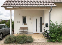 Nun beginnt der Spaziergang durch das allmählich gefüllte Neubaugebiet. Es ist offensichtlich vergebliche Mühe, mit Bebauungsplanfestsetzungen und -vorschriften den Bauherrschaften klarzumachen, dass es nicht allein um die Verwirklichung eigener (Wohn-)Träume, sondern um das Einfügen in eine Kulturlandschaft geht, wenn man baut. Analog zu „freier Fahrt für freie Bürger“ gilt offensichtlich: „Freies Bauen für freie BürgerInnen“. Aber bleiben wir konkret.
