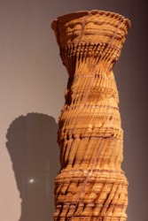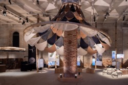 Das etwas umständliche Motto der Biennale ist „Intelligens – Natural, Artificial, Collectiv.“ Bei Intelligens wird gens stets unterstrichen – es kommt auf die Menschen an, so die Botschaft. Er wolle, dass Menschen zusammenarbeiten, die das sonst nicht tun, so Ratti – und mit den Projekten, die gezeigt werden, solle neues Wissen entwickelt werden können. Tatsächlich sind in der Ausstellung viele Disziplinen vertreten, sind einfachste traditionelle Bauweisen ebenso wie höchst komplexe Wissenschaft integriert. Die letzten drei Begriffe des Ausstellungsmottos sind die, nach denen die Exponate geordnet sind. Zuerst also „Natural“, dies scheint die wichtigste Sektion zu sein, zumindest gemessen an der Zahl der Exponate und gezeigten Projekte: 133 der im Kurzführer genannten 356. Hier wird die Kraft der Pilze, der Pflanzen beschwört. Zu sehen sind die baubotanischen Projekte des Office for Living Architecture (Stuttgart/München), eine mögliche Zukunft des Tibers wird vorgestellt, ebenso wie die „Elefantenkappelle“, bestehend aus Bögen, deren Steine aus Elefantendung hergestellt wurden. Die Umgestaltung von Landschaften mit und am Wasser wird mehrfach thematisiert, es wird das Potenzial von natürlichen Stoffen erkundet. Fassadenschindeln aus Muscheln, Wärmedämmung aus Seegras, Ziegel aus Abfall.