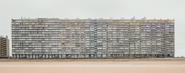 Belgien, Nordseeküste, "Königin der Bäder". Die Architektur in den privilegierten Zonen am Strand mit Blick aufs Meer entspricht kaum dem Mondänen, das in der Belle Époque den Ruhm des Seebads Oostende begründete. Fotografien aus der Blickrichtung von Strand und Meer dokumentieren kunstvoll und akribisch den Typus der Urlaubsarchitektur, der an Massenunterkünfte aller Art erinnert. Zum Foto-Essay >>>