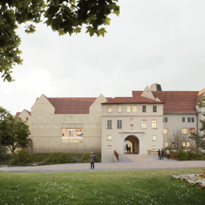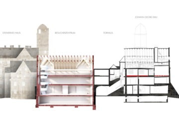 Im architektonisch-freiraumplanerischen Realisierungswettbewerb wurde ein ganzheitliches Konzept für die Sanierung, die Hofgestaltung sowie den Neubau eines Besucherzentrums gesucht. Wichtige Aspekte dabei waren die barrierefreie Erschließung sämtlicher öffentlicher Bereiche, der Einklang von modernen Museumsräumen mit der Denkmalpflege, sowie die klimagerechte Sanierung der Außenbereiche. Der Neubau sollte die Lücke zwischen Torhaus und Steinernem Haus schließen und somit die Hofsituation komplettieren.