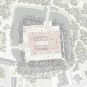 Leitidee des siegreichen Entwurfes ist der seither der vergessene Dachraum des Schlosses, dem keine besondere Bedeutung beigemessen wurde, und der nun museal nutzbar wird. Auch im Entwurf für das neue Besucherzentrums spielt der Dachraum daher eine zentrale Rolle und erschafft einen großen Luftraum mit einer Empore. Hier wird das Stadtlabor einziehen, das flexibel als Konzertraum, Vortragsraum oder Werkstatt bespielt werden kann. Das Dach des Neubaus schließt im selben Material an den Bestand an, sodass Neu und Alt als Skulptur zu einem harmonischen Bild verschmelzen.