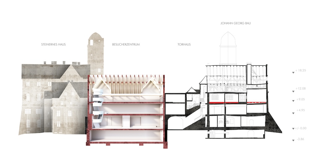 Im architektonisch-freiraumplanerischen Realisierungswettbewerb wurde ein ganzheitliches Konzept für die Sanierung, die Hofgestaltung sowie den Neubau eines Besucherzentrums gesucht. Wichtige Aspekte dabei waren die barrierefreie Erschließung sämtlicher öffentlicher Bereiche, der Einklang von modernen Museumsräumen mit der Denkmalpflege, sowie die klimagerechte Sanierung der Außenbereiche. Der Neubau sollte die Lücke zwischen Torhaus und Steinernem Haus schließen und somit die Hofsituation komplettieren.