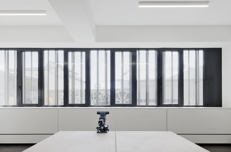Da der Lochungsanteil der Bleche bei etwa 50 Prozent liegt, können die Parkebenen natürlich be- und entlüftet werden. Der hohe Lochanteil erzeugt ein hohes Maß an Transparenz und Durchlässigkeit und macht aus dem Wechsel von den Glas- und Metallfassaden und dem im fünften Obergeschoss zu einem Riegel reduzierten Geschoss ein belebendes Changieren aus Volumen, Oberflächen und Lichtverhältnissen.