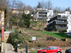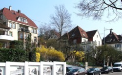 So sehr prägen diese Villen das Bild, dass eine Reihe belangloserer Häuschen kaum ins Auge fällt: schlichte Kuben mit Walm- oder Satteldach, wie sie auch oberhalb die Straßenzüge bevölkern; ein vereinzelter Nachkriegs-Bungalow; die Panoramaklinik. Doch in jüngster Zeit macht sich eine Invasion weißer Schuhschachteln bemerkbar. Sie sollen wohl an einen vermeintlichen Bauhaus-Stil anknüpfen, bezwecken aber nur eines: aus dem luxuriösen Grund und Boden das Maximum an Rendite herauszupressen. Bauen um zu verkaufen: das haben auch schon die Architekten-Brüder Karl und Otto Junge um 1900 praktiziert, die am Fuß der Mülbergerstraße eine ganze Villenkolonie mit 15 Häusern errichteten. Doch nun wird das Terrain systematisch mit viergeschossigen Klötzen zugepflastert, die einer hinter und über dem anderen den Hang hinaufklettern.