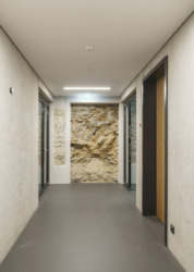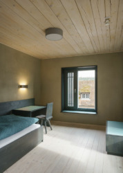 Für ihren jüngsten Erweiterungsbau St. Wunibald mit 30 Einzelzimmern mit Dusche/WC für Gäste, einem Kindergarten und Räumen für die Pfarrverwaltung wollten die Mönche besonders nachhaltige Baumaterialien verwenden. Die Konstruktion des von Hirner & Riehl Architekten und Stadtplanern geplanten und 2022 fertiggestellten Neubaus ist aus Holz, die Wärmedämmung der Außenwände und des Dachs aus Stroh, das mit Lehm verputzt wurde. Brandschutztechnisch bilden zwei der Gästezimmer im Obergeschoss eine Einheit, deren Zwischenwände mit Hanf gedämmt sind. Zwischen den Einheiten musste mit Mineralwolle gedämmt werden.