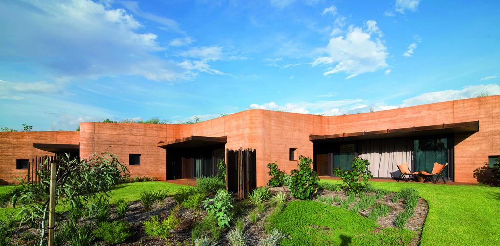 Im Mittelpunkt aber steht die Architektur, die als dezidiert zeitgemäße präsentiert wird – gezielt soll der Eindruck vermieden werden, mit Lehm zu bauen müsse sich durch eine Erscheinungsform auszeichnen, die in Opposition zu gängigen Vorlieben tritt. Scharfkantige klare Formen in bester Komposition aus Kuben und Flächen zeigt das europäische Zentrum für Bodenproben in Orléans (Design & Architecture mit NAMA Architecture), ein Meditationszentrum in Palo Alto, Klaifornien (Aidlin Darling) oder ein städtisches Hallenbad im spanischen Toro (Antonio Raya, Cristóbal Crespo, Santiago Sánchez, Enrique Antelo). Gezeigt werden auch eine luxuriöse Wohnanlage in Kolumbien oder ein Hotelkomplex in Australien, Architektur, in der der Lehm den Weg in die Gesellschaft der Gutverdiener gefunden hat, für die er Teil ihres Lifestyle-Codes werden könnte. Daneben finden sich aber auch die Projekte, in denen Lehm Teil einer ganzheitlichen Strategie ist, die dzu beiträgt, die Lebensumstände von Menschen zu verbessern – eine Schule in Burma (Line Ramstad unt Verein Gyaw Gyaw), ein Ausbildungszentrum für Elektriker in Bangladesch (Anna Heringer) oder ein Dorf, das nach einem Erdbeben wiederaufgebaut wurde und das sich auch deswegen an traditionelle Techniken anlehnt, weil die sich als widerstandsfähig gegen Erdbeben erwiesen haben.