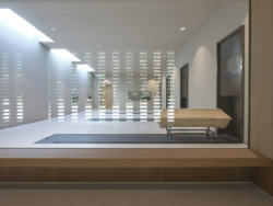Dieser Meditationshof ist ein geschützter Aufenthaltsraum, ein Ort der Ruhe, von dem aus die öffentlichen Bereiche des Krematoriums zugänglich sind, die sich entlang der Außenwände um die technischen Räume legen: die Aufbahrungsräume, der Empfangsraum und der Raum, der es Trauernden möglich macht, die Einfahrt des Sargs in die Einäscherungsanlage zu verfolgen; eine Neuerung, die immer mehr nachgefragt wird. Diese öffentlichen Bereiche, die hinter einem Licht filternden und vor Blicken schützenden Gitter mit auf Abstand gesetzten Ziegeln liegen, sind gut zugänglich und dennoch von den technischen Bereichen getrennt. Holz und hellverputzte Wände entsprechen im Innern der würdigen und zurückhaltenden Atmosphäre, die schon das Äußere prägt. Im Untergeschoss sind zudem noch die Räume für Nachbereitung, Urnengravur und Übergabe untergebracht. Das Krematorium ist das einzige in München und seinem Umland, auch viele Menschen von außerhalb nehmen es in Anspruch. Aber es wurde mit dem Neubau nun auch möglich, die gesamte Abschiedszeremonie von der Trauerfeier bis zur Urnenbeisetzung an einem Tag durchzuführen.