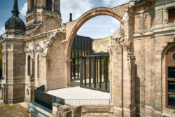 Die Trinitatiskirche in Dresden, ein Bau der Gründerzeit, war eines der vielen Opfer der Bomben vom 13. und 14. Februar 1945. Sie brannte völlig aus, Dachstuhl und Innenausstattung gingen vollständig verloren, lediglich der Turm und die Außenmauern blieben. In der Gründerzeit war sie von Karl Barth in Anlehnung an die italienische Renaissance errichtet worden, sie hatte der wachsenden Stadt und der neuen Johannvorstadt Rechnung getragen, 1894 war sie eingeweiht worden. Als Ruine blieb sie trotz zwischenzeitlicher Pläne, sie ganz abzureißen, die Gemeinde hielt an ihr fest, entwickelte ein Projekt für einen Gottedienstraum und ein Tagungshaus, feierte in der enttrümmerten Kirche unter freiem Himmel Gottesdienste. Als Wahrzeichen des Stadtteils, als Ort, der Gemeinschaft stiftet und an den Krieg gemahnt, blieb die Ruine erhalten. 1996 gründete sich ein Förderverein, der die Jugendarbeit zu unterstützen, die Ruine zu erhalten und ein kulturelles Zentrum zu schaffen sich zum Ziel gemacht hatte. Es dauerte mehr als 20 Jahre bis ein Wettbewerb für eine Jugendkirche ausgeschrieben hatte, bis dahin hatte man die Kirche mit wenigen hergerichteten Räumen bereits genutzt, aber der richtige Rahmen, gute Räume hätten weiterhin gefehlt. Code Unique hatten den Wettbewerb gewonnen, 2020 begann der Bau, 2022 wurde die Jugendkriche eröffnet. Sie ist nun Dresdens Jugendkirche – ein Raum für kirchliche Veranstaltungen mit Jugendlichen, aber auch solchem die wenig mit der Kirche zu tun haben und für die Jugendliche sonst keinen Raum finden.