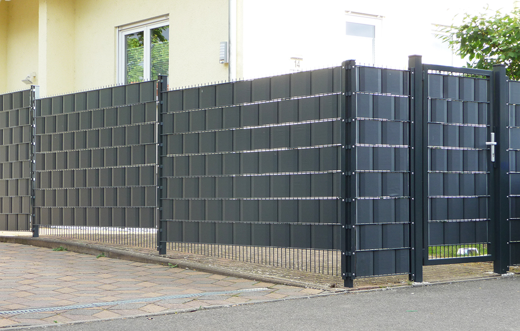 Unberührt bleibt die Frage, warum sich Menschen ihr schmuckes Einfamilienhaus wie einen Wertstoffhof oder einen Truppenübungsplatz umzäunen. Wobei möchten sie nicht beobachtet werden? Bei der Freikörperkultur? Vergraben sie Wertsachen oder verwenden sie verbotene Pflanzenspritzmittel? Vielleicht arbeiten sie auch an bahnbrechenden Erfindungen. Wir erinnern uns: Apple’s kometenhafter Aufstieg begann in einer kalifornischen Garage. Warum sollte in einem Deidesheimer Vorgarten nicht ähnliches gelingen? Das Wettbewerbsprinzip könnte durchaus eine Rolle spielen. Kein Wunder, dass sich Bauherren gleich doppelt an ihrer Grundstücksgrenze sichern. Tatsächlich bleiben zu den Zaunpfosten hin fingerbreite Schlitze offen, da schaffen versetzte Sichtschutzraster Abhilfe gegen neugierige Nachbarn.