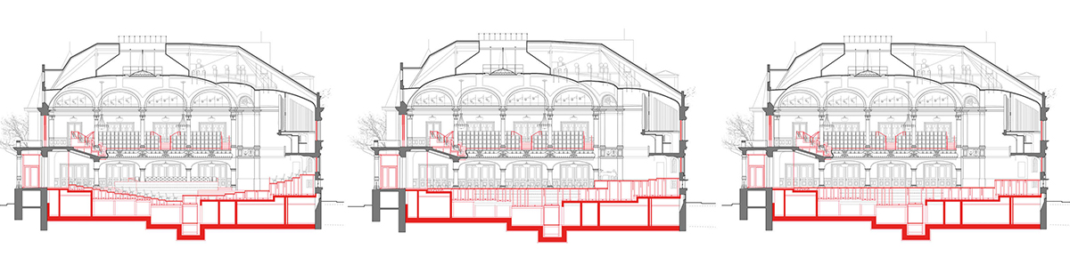 Sobald eine öffentlich genutzte Halle saniert wird, gelten nunmal die offiziellen Normen, Regeln, Verordnungen und vieles mehr. Die funktionale Problematik der alten Stadthalle war unübersehbar. Der zentrale Saal dominierte, er durchschlug regelrecht im rechten Winkel den uferparallel gesetzten Langbau, sodass die links und rechts gelegenen Räume im Prinzip nur durch den Hauptsaal oder außen ums Gebäude herum zu erreichen waren. Der in einer einzigen Erdgeschossebene fixierte große Saal bot keine guten Voraussetzungen für den Konzertbetrieb.