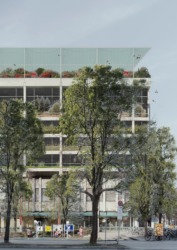 Eine Arbeit fällt durch ihre Zurückhaltung auf. Die Hauptnutzung ist hier das Wohnen. Im Rückblick wird erzählt, wie sich das Haus in einen Teil der Stadt auch dadurch verwandeln konnte, dass das Sockelgeschoss geöffnet, mit Treppen und Rampen erschlossen und landschaftsarchitektonisch gestaltet wurde; Bars, ein Bäcker und Arbeitsräume der Uni sind ebenfalls integriert.