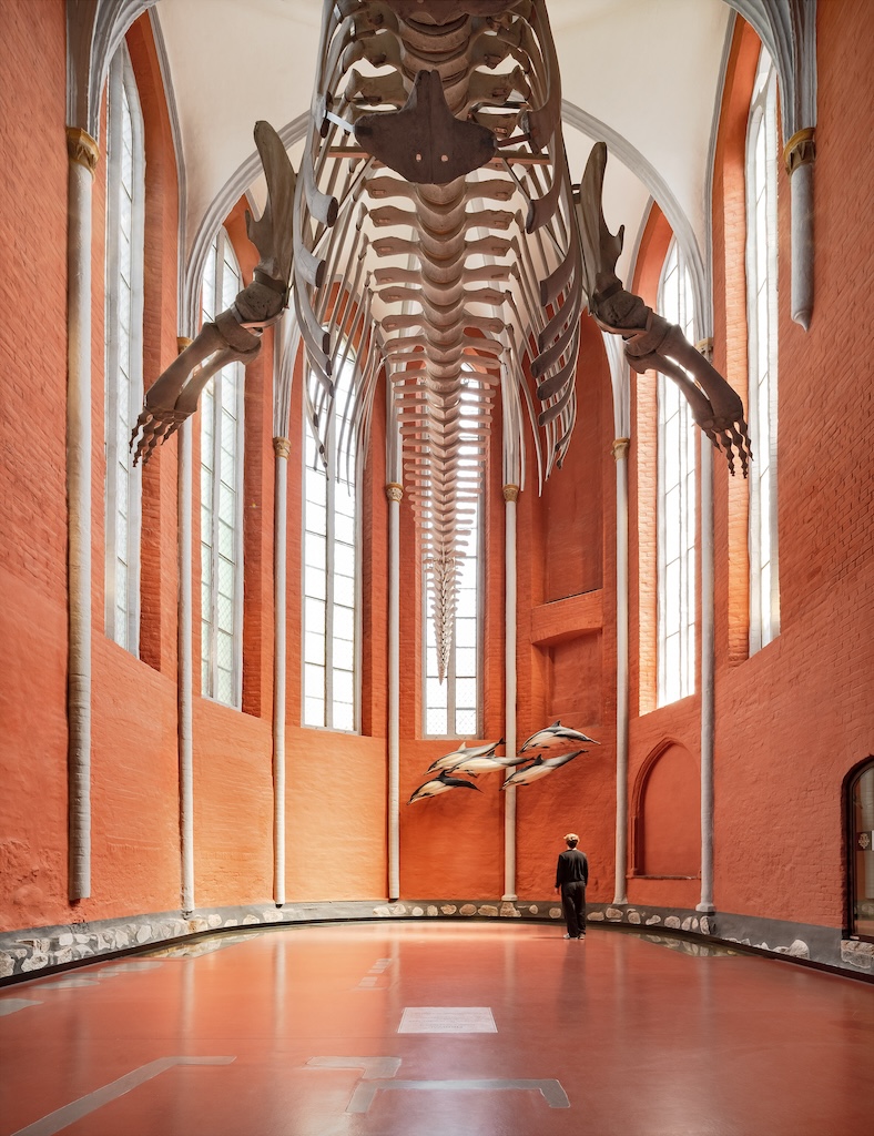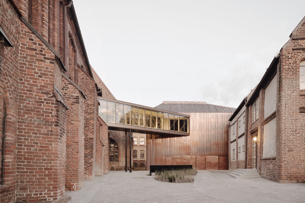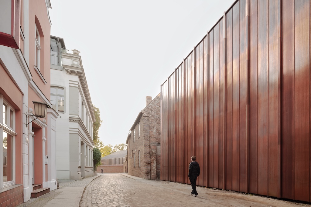 Es ist deswegen auch einleuchtend, dass das Äußere einer anderen gestalterischen Strategie bedurfte. Hier haben sich Reichel Schlaier auf Glas und vor allem Kupfer konzentriert, dessen matte Farbigkeit sich nicht nur harmonisch in die von Ziegel geprägte Umgebung fügt, ohne das Neue unkenntlich zu machen. Die mitunter doch recht großen Flächen, die neu im Stadtraum eingezogen wurden, sind so gleichzeitig von Respekt wie von Selbstbewusstsein geprägt. Von außen nun wirkt das Ganze optisch wie aus einem Guss, eine Qualität, die das Museum im Innern auf andere Weise einlöst. Damit wird nicht nur das fortgeschrieben, was diesen Ort in den letzten Jahren und Jahrzehnten geprägt hat, es entspricht auch einer sonst in Stralsund zu findenden Mischung aus Angemessenheit und Zeitgenossenschaft, die von einzelnen, in Lücken eingefügten Stadthäusern bis eben zum Ozeaneum reicht, das nun nicht nur inhaltlich ein Pendant zum Meeresmuseum im Westen darstellt. Auch gestalterisch spannen beide nun die Potenziale auf, den Bestand erfrischend fortzuschreiben.