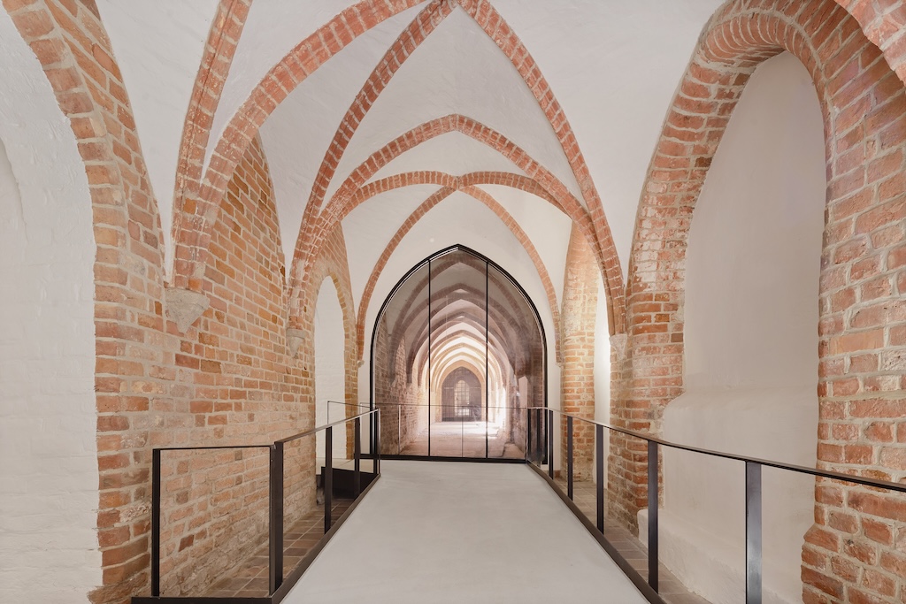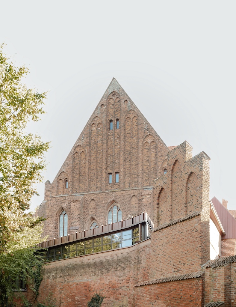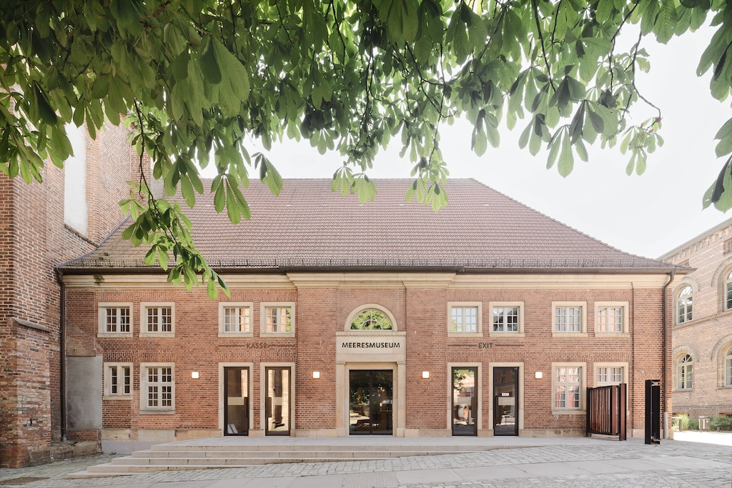 Auch etwa 200 Kilometer weiter östlich von Lübeck wurde, ebenfalls vor wenigen Monaten, ein Projekt fertiggestellt, das sich in einen komplexen, historisch bedeutenden Bestand einfügt und ihn fortschreibt. Dabei sei es ihnen nicht darum gegangen, den Bestand zu dominieren, sondern ihn zu ordnen, lesbar zu machen und mit Respekt weiterzubauen, so Elke Reichel und Peter Schlaier. Sie leiten das Büro, das den Wettbewerb für die Sanierung und Erweiterung des Meeresmuseums in Stralsund 2017 gewinnen konnte. Dieses Museum liegt am westlichen Rand der Altstadt von Stralsund, wurde hier 1951 in den Bauten eines ehemaligen Klosters mit zwei Kreuzgängen eingerichtet und gehört seither zu den beliebtesten Museen Ostdeutschlands. Mehrfach, zuletzt in den 2000er-Jahren überformt, war auch hier eine grundlegende Neuordnung notwendig geworden, damit das Museum heutigen Ansprüchen und Erwartungen entspricht. Zwischenzeitlich war von der Trägerin, der Stiftung Deutsches Meeresmuseum, 2008 das Ozeaneum eröffnet worden, gebaut wurde es nach Plänen von Behnisch Architekten, Projektleitung seinerzeit: Elke Reichel und Peter Schlaier. Während sich das Ozeaneum den Meeren der nördlichen Erdhalbkugel widmet, informiert das Museum im ehemaligen Dominikanerkloster über die Welt der Meere der südlichen Halbkugel.