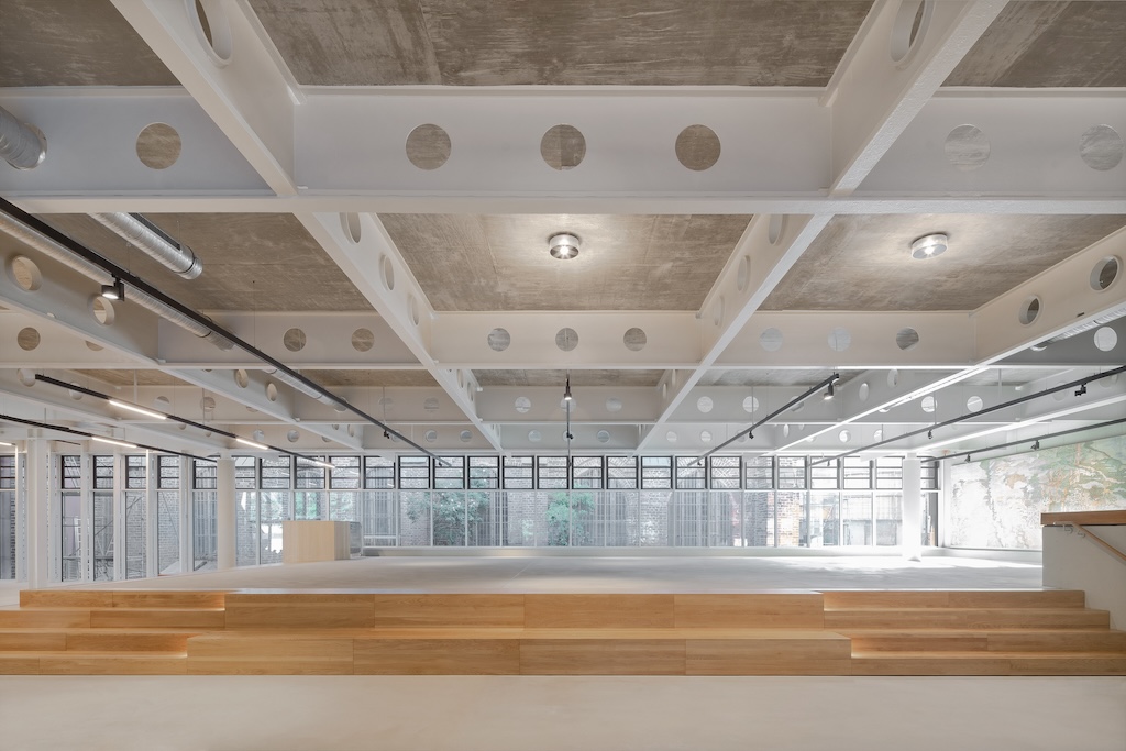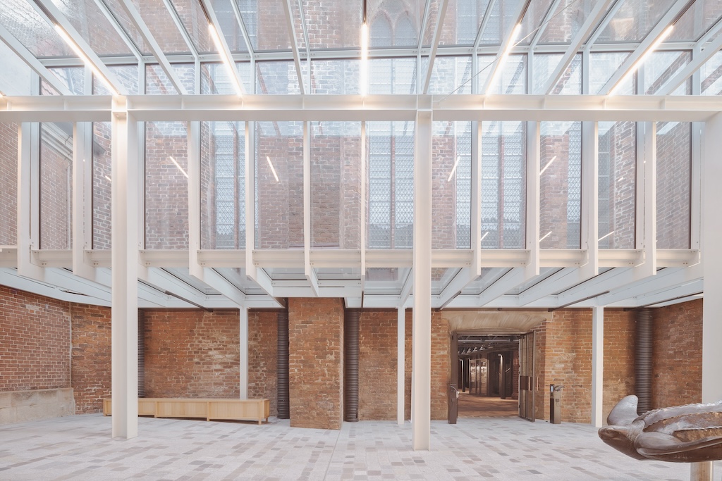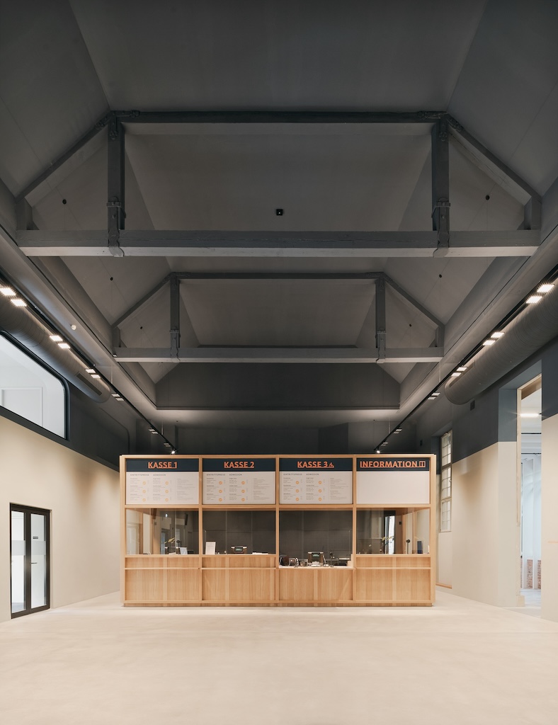 Die Dachkonstruktion der ehemaligen Sporthalle im neuen Eingangsbereich wurde sichtbar gemacht. (Bild: Brigida González)