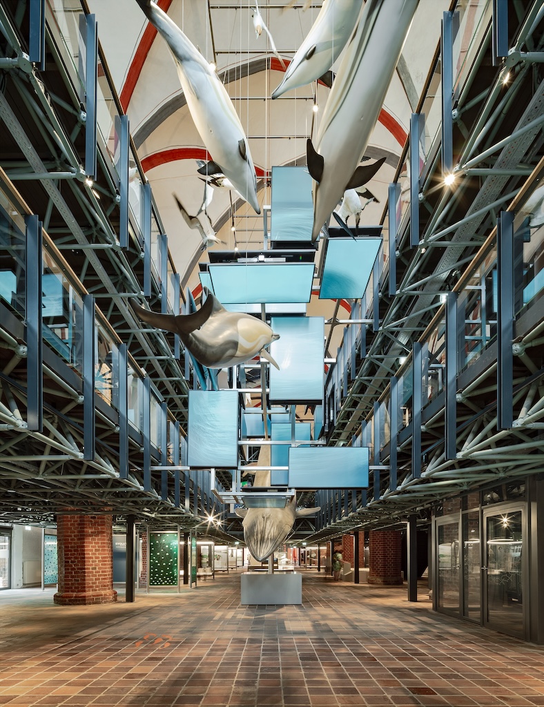 Das beeindruckende, sich mit einer geneigten Scheibe über drei Geschosse ersteckende Aquarium ist ein neuer Höhepunkt des Museums. Für Besuchende nicht erkennbar, aber für die Qualität des Entwurfs genauso wichtig sind die kompakt daran sich angliedernden Räume für die Technik – von Futterzu- bis Wasseraufbereitung, die für kurze Wege und effektive Funktionsabläufe sorgen.