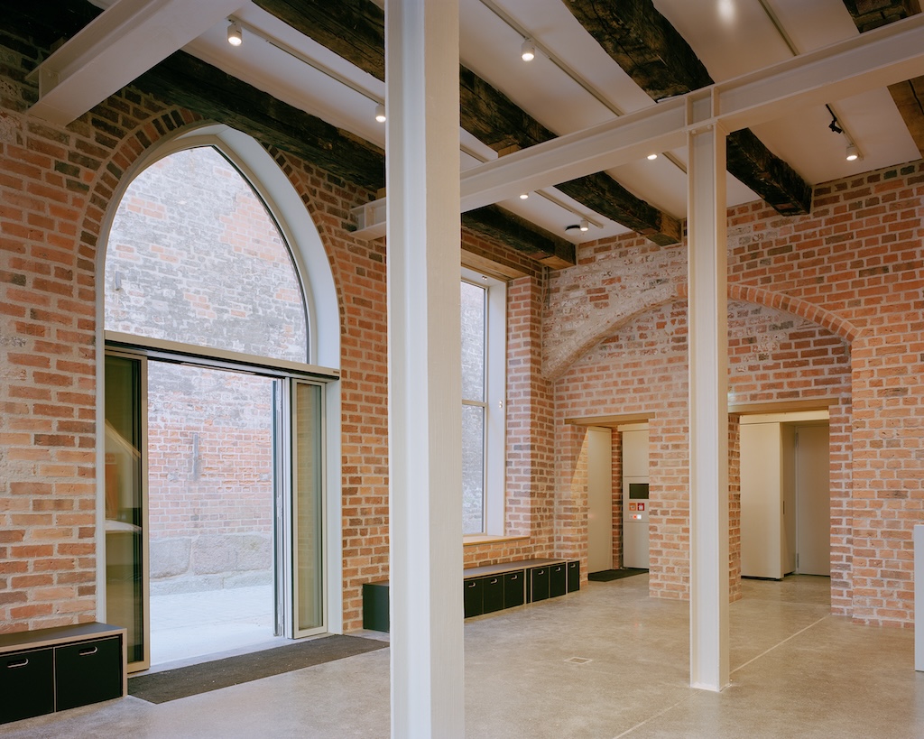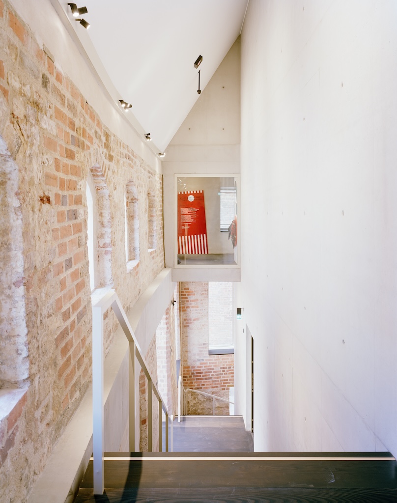 Was neben dem plausiblen raumorganisatorischen Geschick besonders beeindruckt, ist der sensible Umgang mit dem Bestand. Aus Kostengründen, aus Gründen des Denkmalschutzes, aber auch aus Überzeugung wurde viel von dem bewahrt, was sich diesem Ort im Laufe der Geschichte eingeschrieben hat – und damit sind eben nicht nur die historischen Schichten von Mittelalter und früher Neuzeit gemeint, sondern auch und gerade die der 1950er-, 70er- 90er- und Nuller-Jahre. Das Tragwerk der Museumsebenen im Kirchenschiff wurde erwähnt, dazu kommen aber auch der Fußboden der Kirche, das Dachtragwerk der ehemaligen Turnhalle und im Gebäude für das Schildkrötenbecken – bis hin zu Fenstern und Türen, Handläufen und Scheiben, die aus- und an anderer Stelle wieder eingebaut wurden. Das alles, ohne dass je der Verdacht aufkommt, in einem nicht mehr zeitgemäßen Museum gelandet zu sein. Das sorgt für eine erfrischende Abwechslung, ohne die Architektur früherer Jahre museal werden zu lassen. Denn zusammengehalten wird die Mischung der verschiedenen Interventionen im Innern nicht nur durch die kluge Enflilade der Wegeführung, der architektonischen Sorgfalt, dem zentralen Ausgangs- und Zielort, sondern auch von Exponaten und Museumsinhalten. Darauf sich zu verlassen, ist auch eine Haltung, die die Arbeit anderer respektiert; es zeugt aber auch von der guten Zusammenarbeit der Beteiligten.