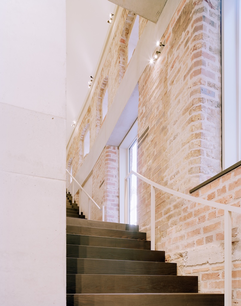 Erdgeschoss im Museum unterhalb einer der beiden Doppelhelixtreppen mit Blick auf das Kabinett im ersten Obergeschoss. (Bild: Alexander de Cuveland)