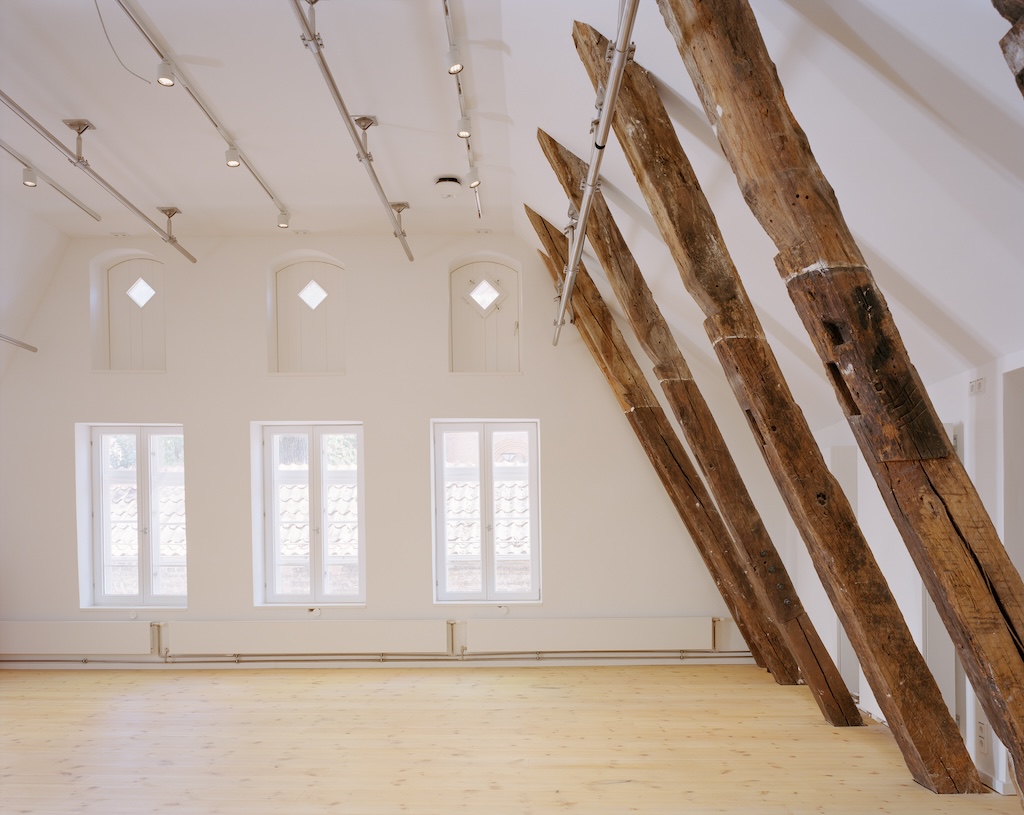 Vor inzwischen 25 Jahren war die zuvor der benachbarten Schule zugehörigen Sporthalle, ein Gebäude aus dem frühen 20. Jahrhundert, dem Museum zur Verfügung gestellt worden. Sie hatte bislang als Vortragsraum, als Forum gedient. Reichel Schlaier verlegten den Haupteingang, der zuvor direkt in die ehemalige Klosterkirche geführt hatte, in dieses Forum. Den sich im Westen anschließenden Raum hinter dem Forum, zwischen Stadtmauer und Westportal der Kirche, schlossen sie mit einer weißen Konstruktion aus Holz, Stahl und Glas, die den Bestand noch gut lesbar lässt. Die so gewonnene, großzügigen Halle fungiert nun als Foyer, als Start wie Ziel des Museumsrundgangs, der mit dem Betreten der Kirche von Westen beginnt.