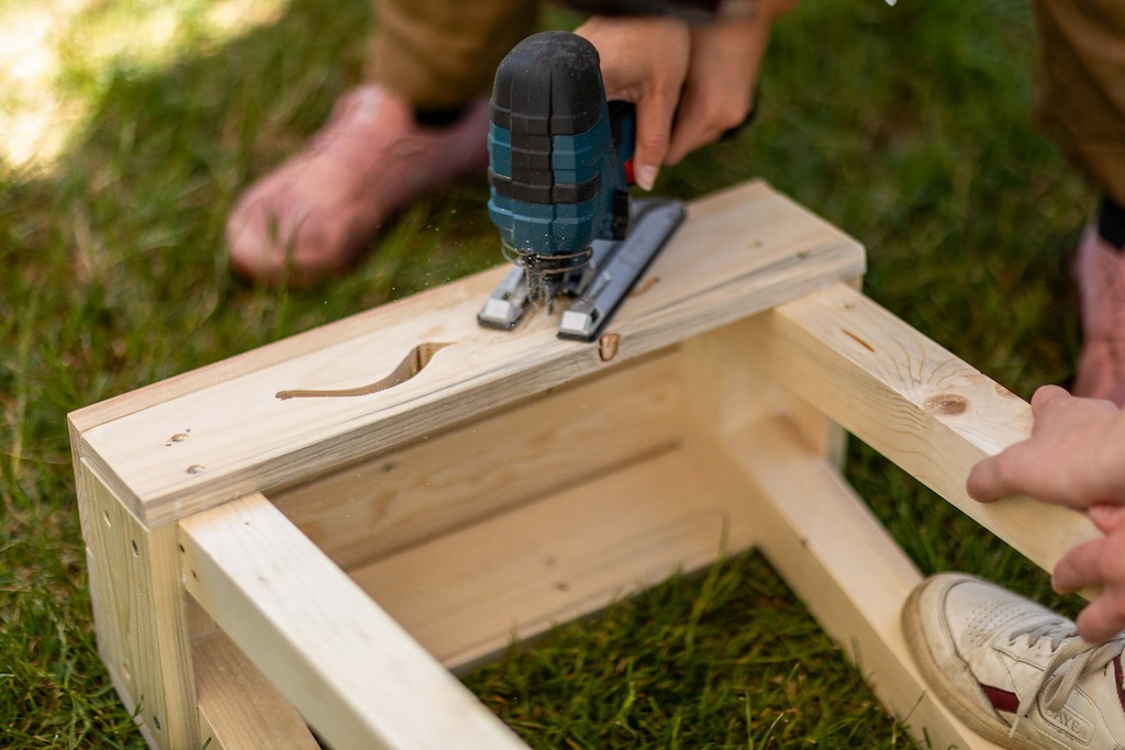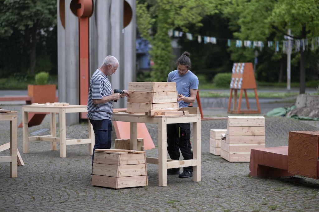 Nele Heise: Dafür setzen wir aber auf Co-Building, was die gemeinsame Umsetzung von den Entwürfen einschließt, die sich bei uns meistens im öffentlichen Raum abspielen. Da setzen wir wirklich alles dran, dass man mit einem Akkuschrauber oder einem Schleifpapier mitmachen kann. Fünfjährige Kinder, Geflüchtete oder Vereinsmitglieder, die sich nochmal anders kennenlernen. Sie schaffen Dinge, die sie selbst nutzen, beziehungsweise, um die sie sich kümmern können.